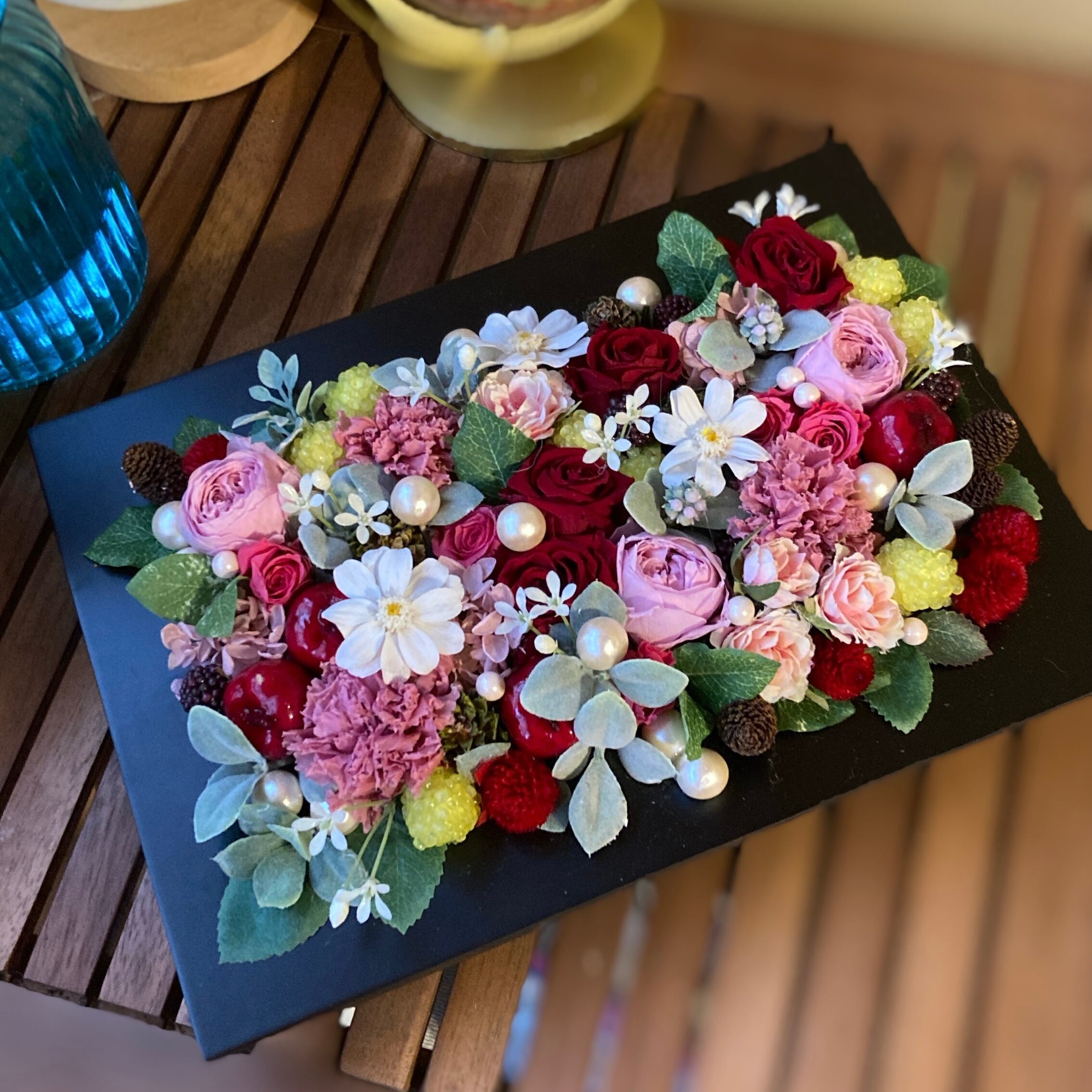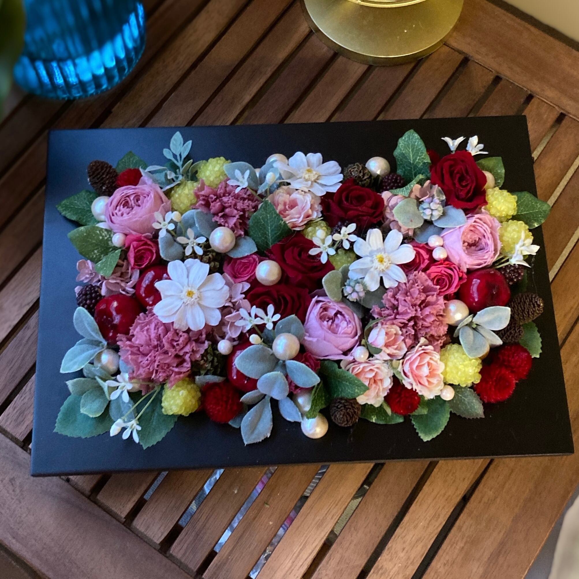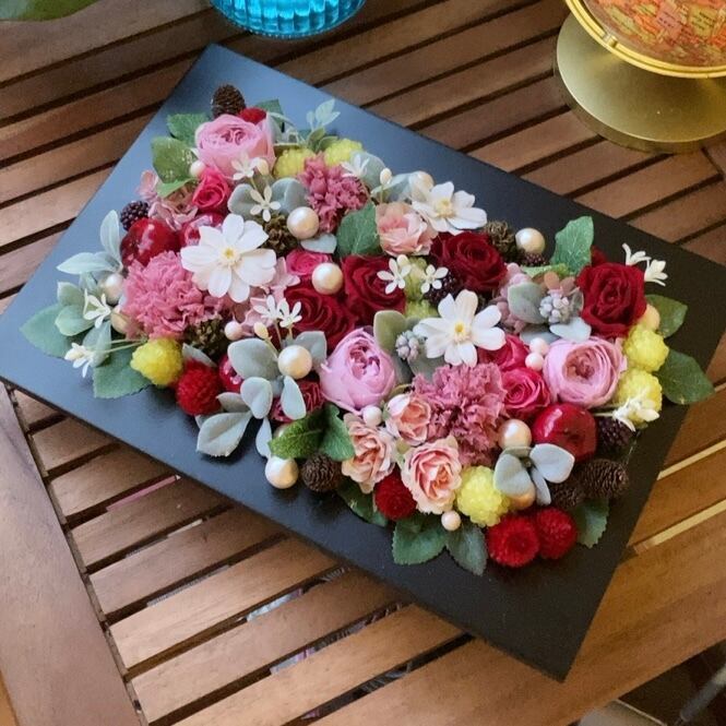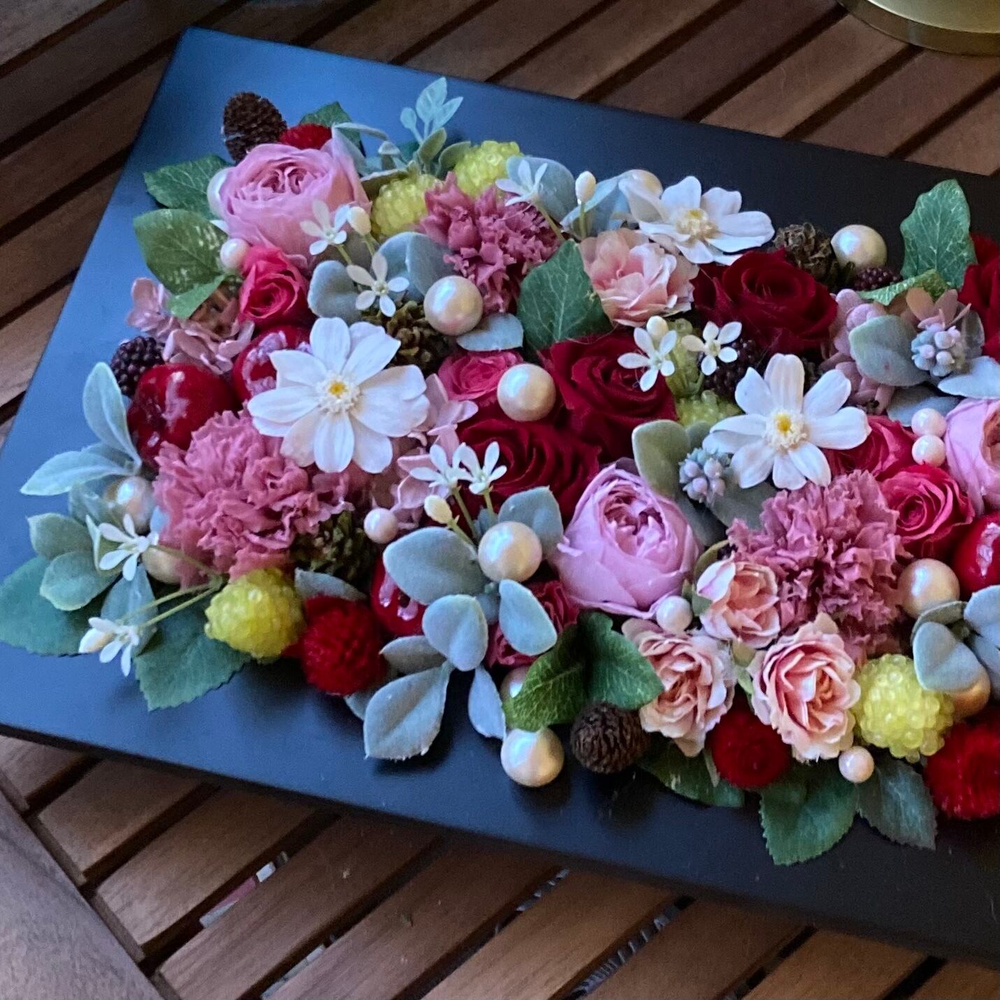 こちらのプリザーブドフレームアレンジは