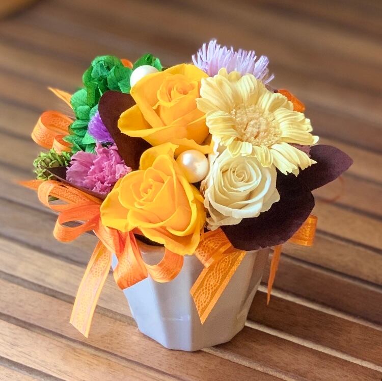 ビタミンカラーのシェネ。プリザーブドフラワーアレンジ